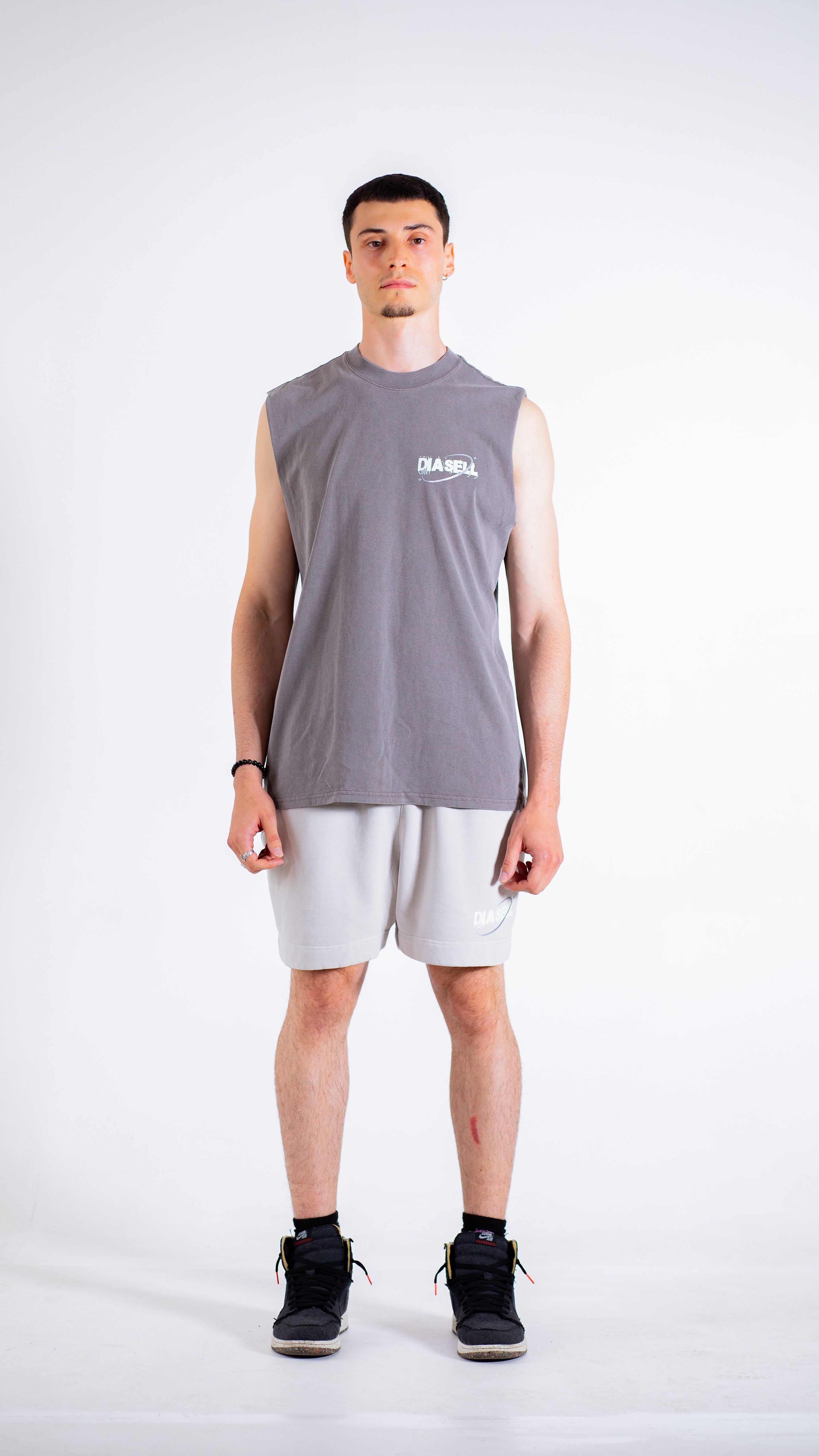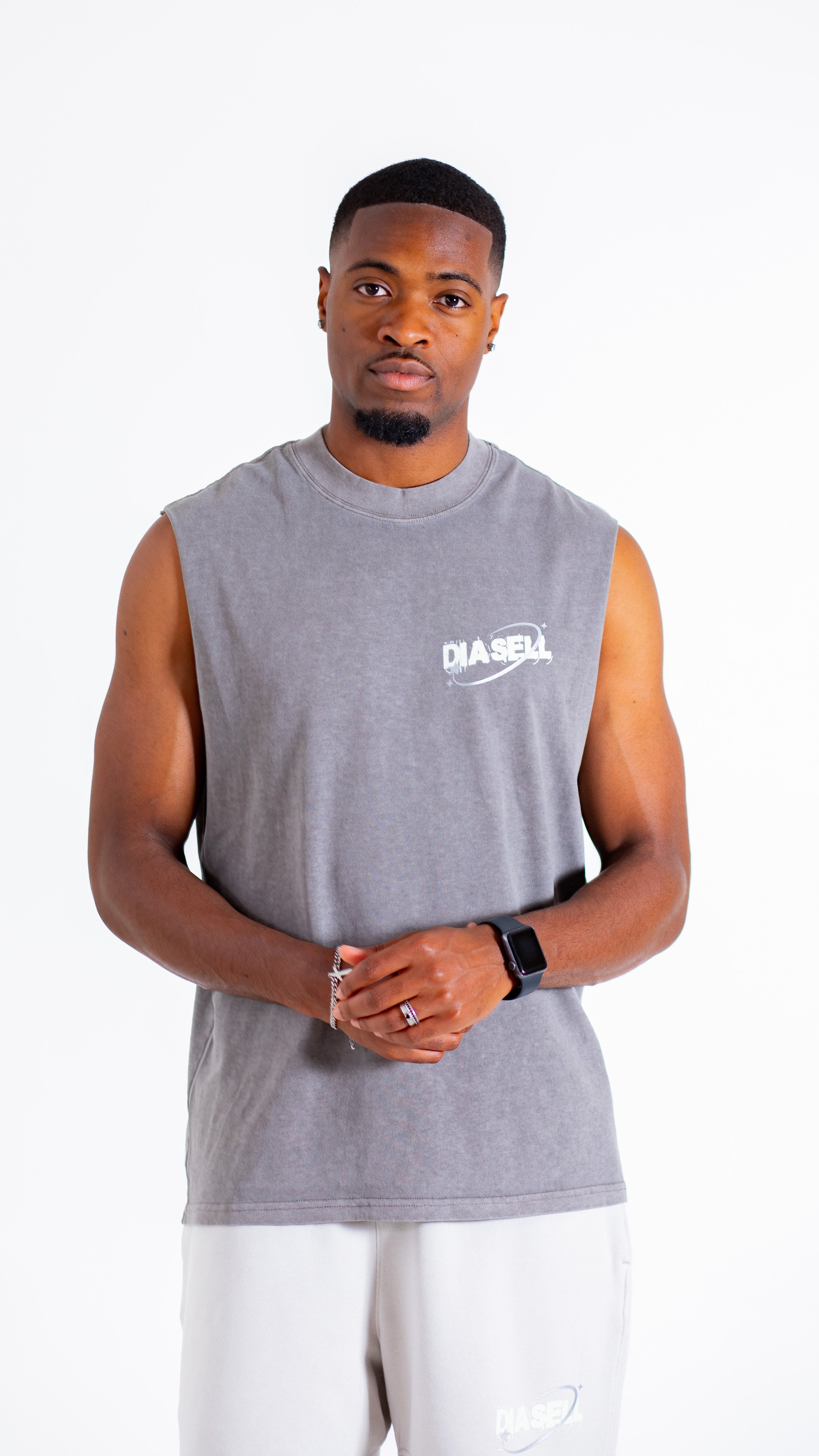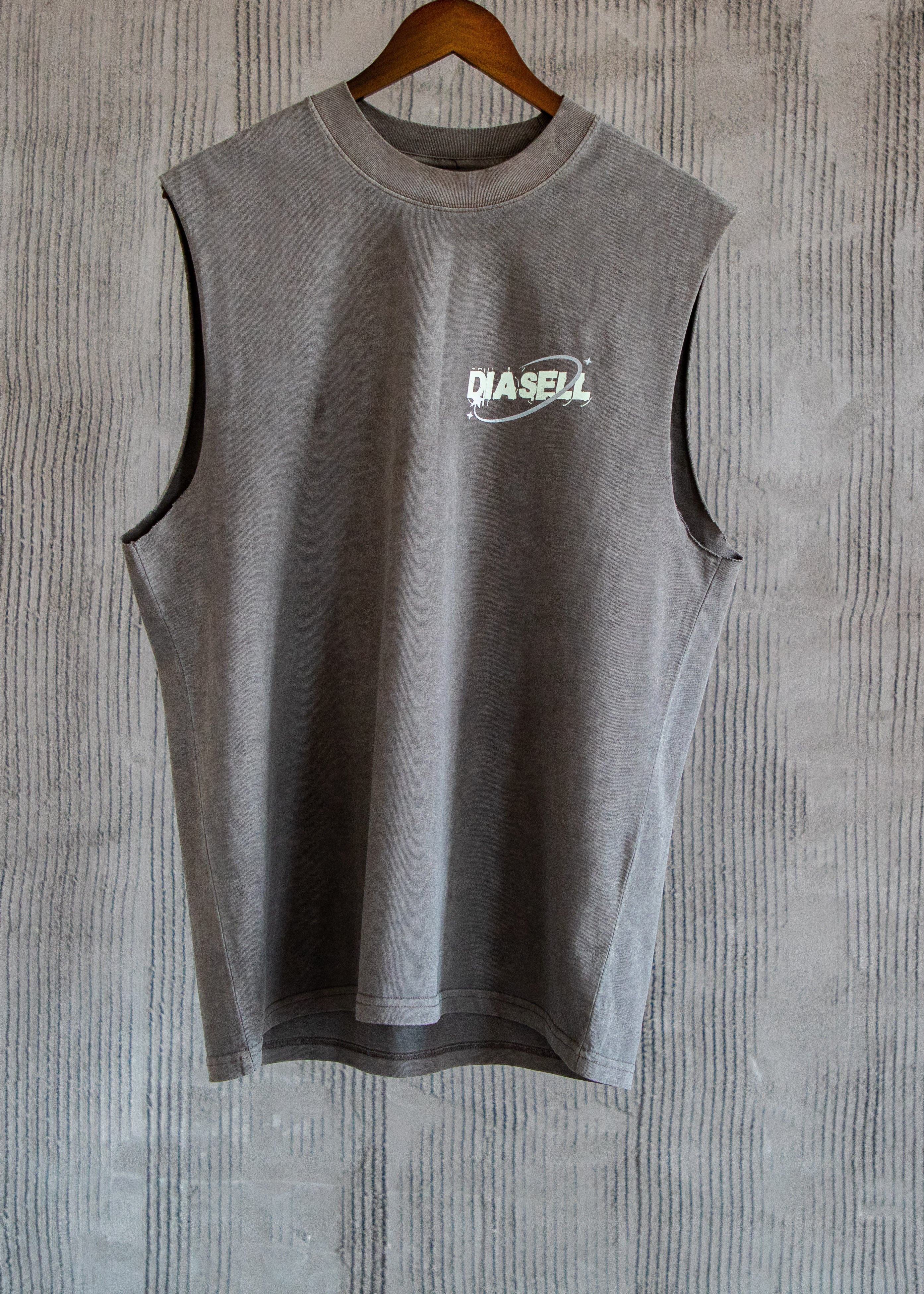 The Diasell Ember is your standout sleeveless tee designed for relaxed confidence. Made from 100% carded cotton at a heavyweight 240gsm, it delivers a sturdy yet soft feel. Featuring a relaxed fit with wide neck ribbing, raw armholes, and garment-dyed finish, it’s built for bold expression with subtle strength.