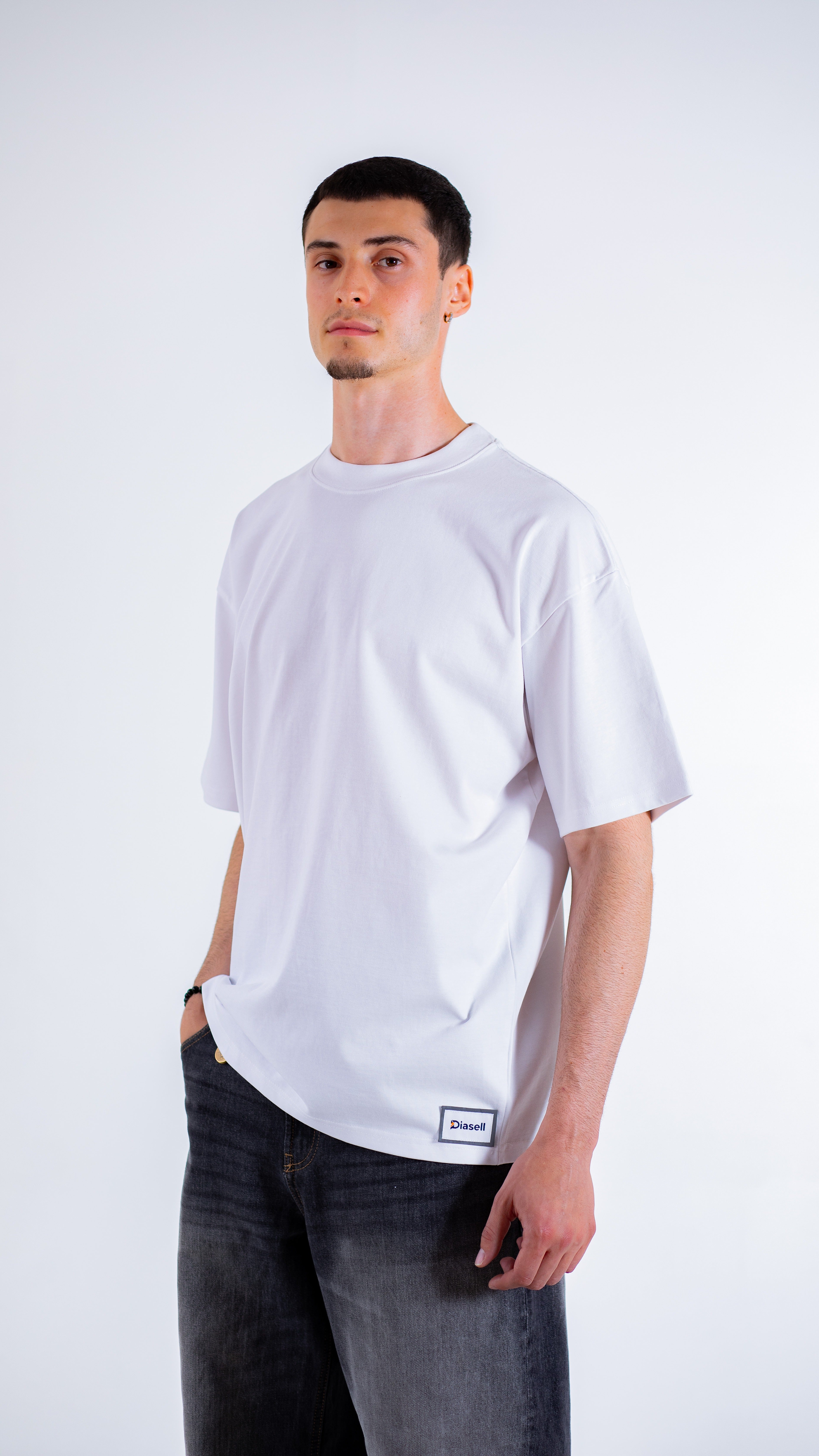 The Diasell Reflection tee is all about clean, impactful style. Crafted from heavyweight 350gsm organic cotton, it offers a sharp, oversized fit with light-reactive embroidery that subtly catches and reflects the light. Using only certified organic materials and responsible production, this piece brings an understated yet striking element to your wardrobe.